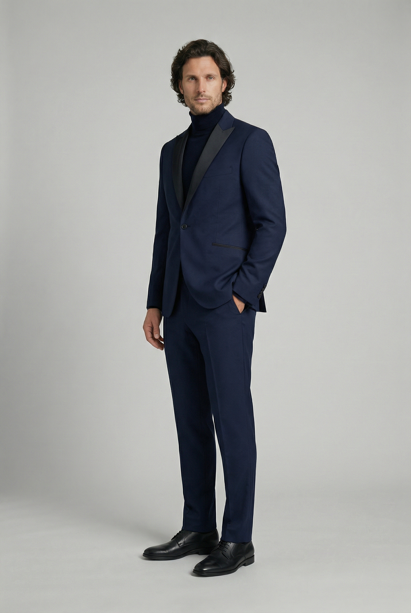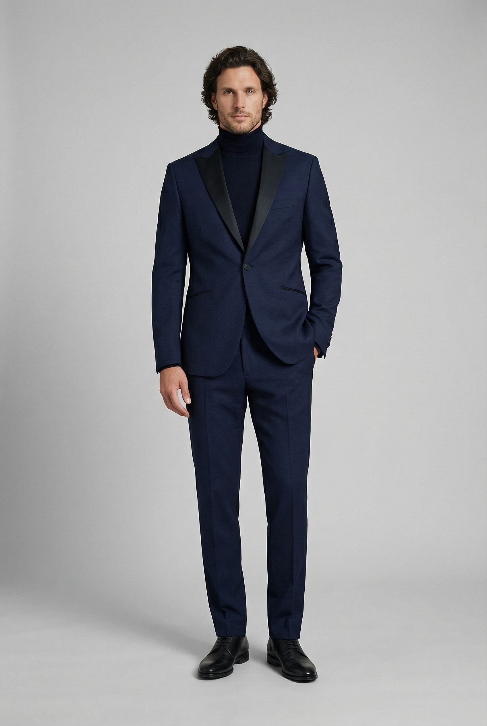 The Savile Row Suit is crafted from premium Italian wool and features a modern silhouette with ample room for movement.