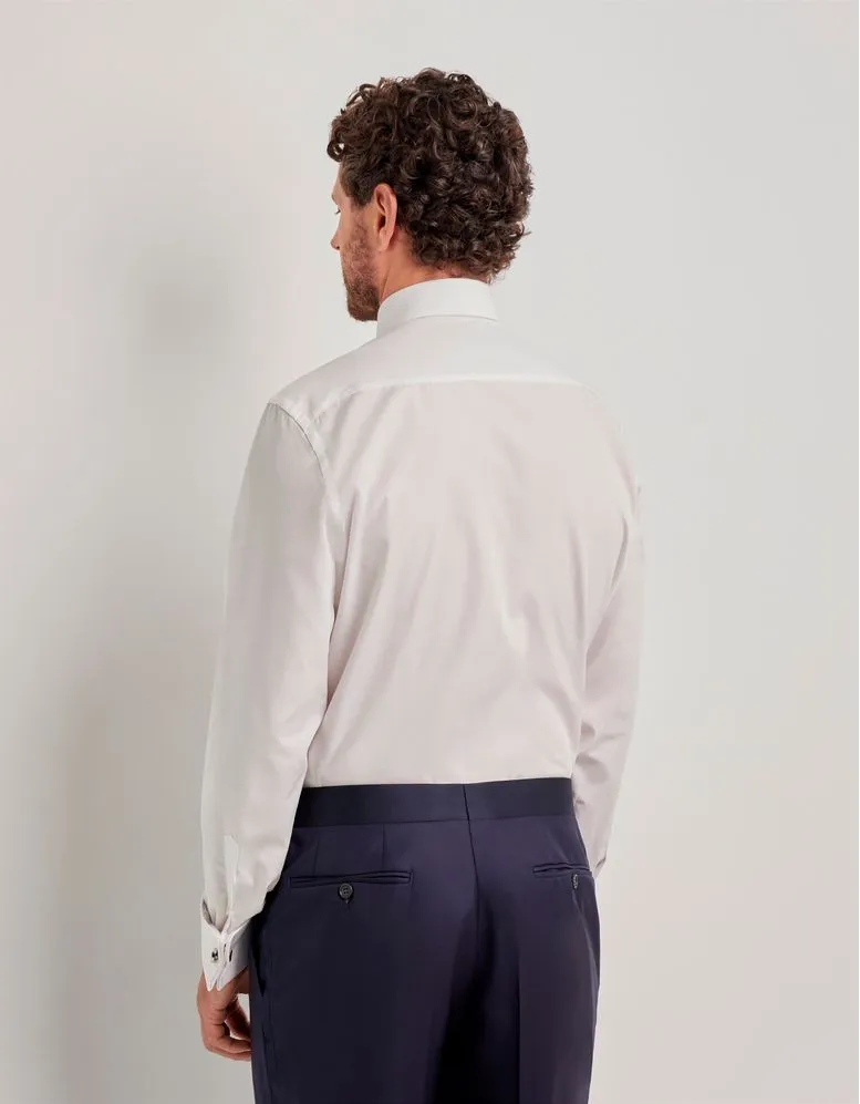 The Savile Row Suit is crafted from premium Italian wool and features a modern silhouette with ample room for movement.